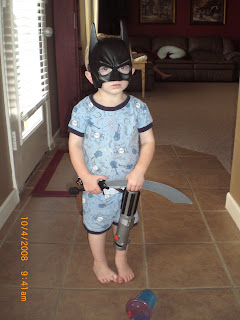 Asher is so into guns, swords and lightsabers. He has to have this belt on to carry around his gun and lightsaber and any other weapon he can manage to fit into the belt or his pockets, if he has any. It is so funny!! He then gets on his batman mask to finish out the outfit. He even started singing the Star Wars theme song with his lightsaber thrust up into the air. He brings so much fun and humor into our lives. I can't wait until him and Beckett are running around together as action heroes. But then the other day he runs down with one of the girls purse on his arm and had to have it, he wanted to be just like Mom and the girls.